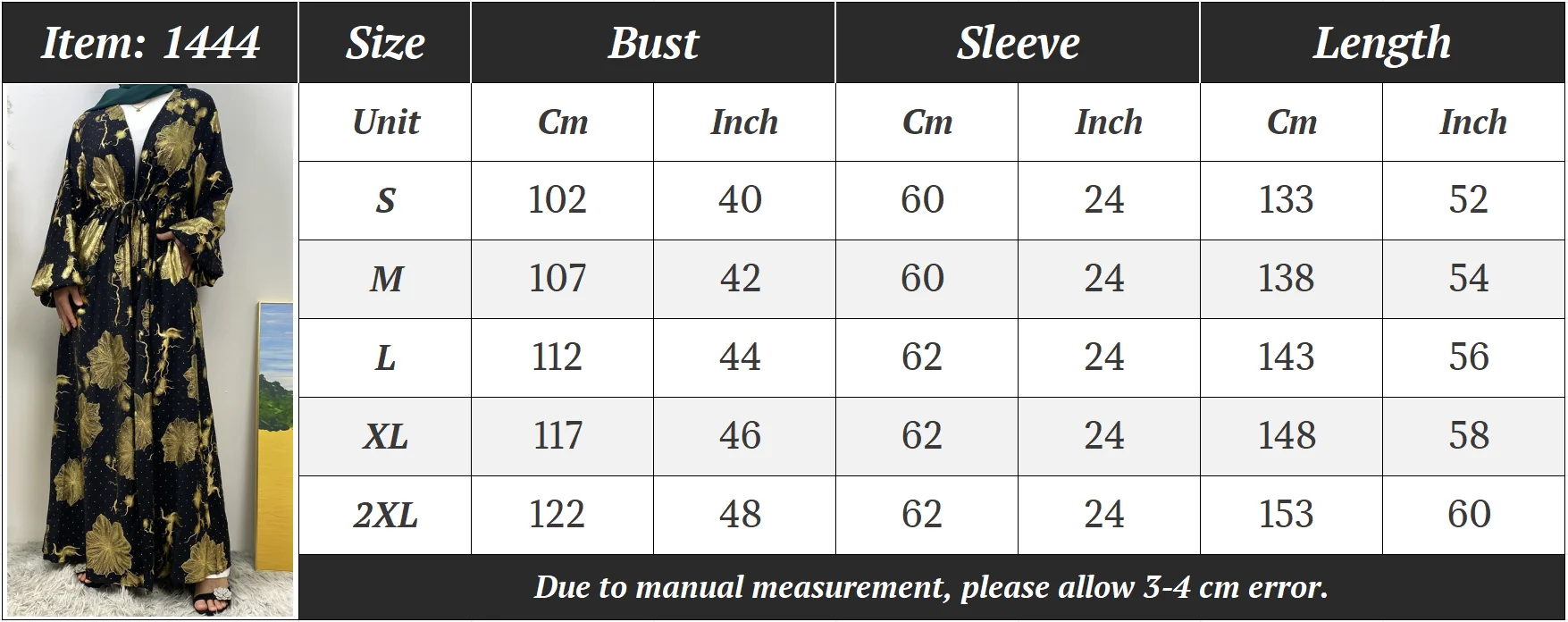 2XL: Bust 130 cm,Sleeve 74 cm,Length 153cm