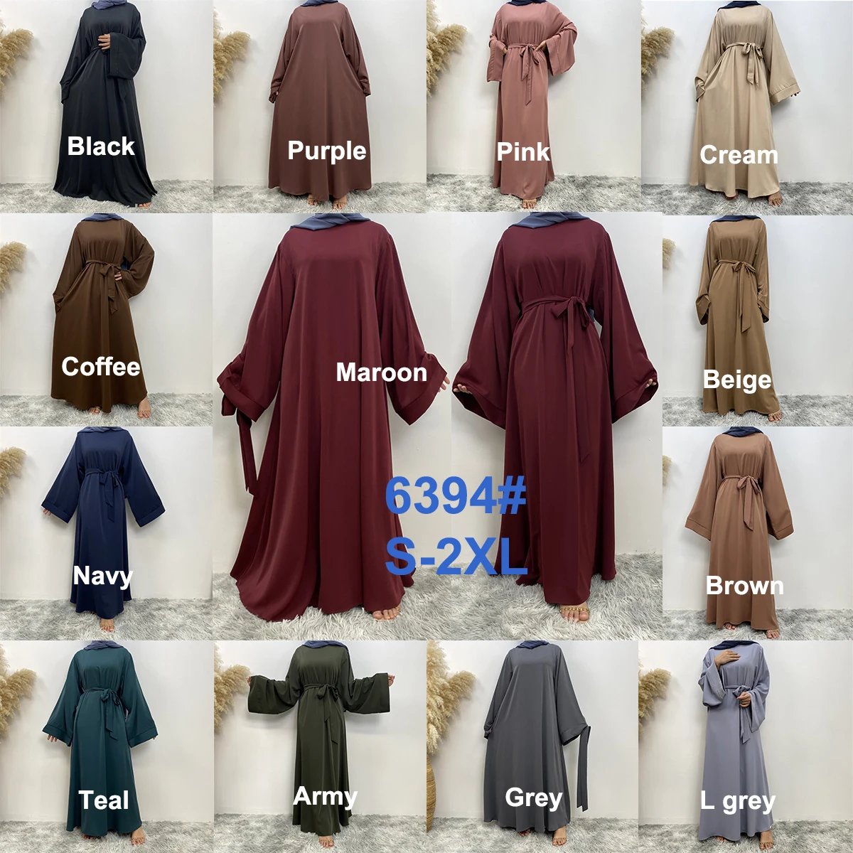 Hot Sell Popular Simple Nida Abaya Long Dress Pure Color A-line Loose Sleeves Dresses Dubai UK Modest Elegant Dress Ramadan