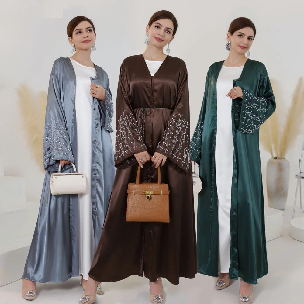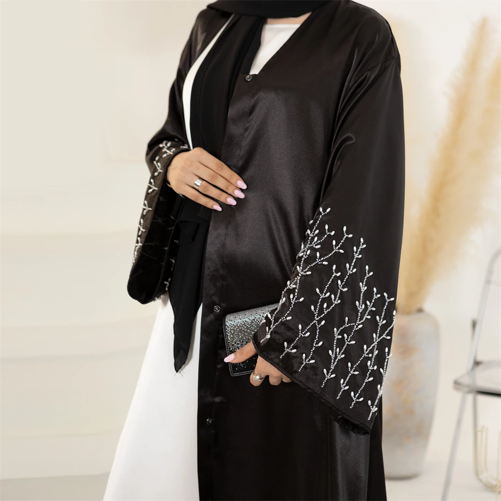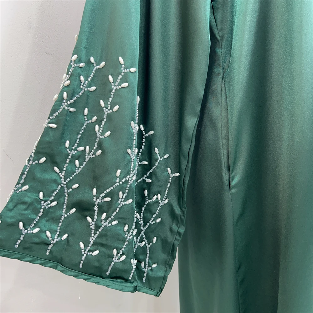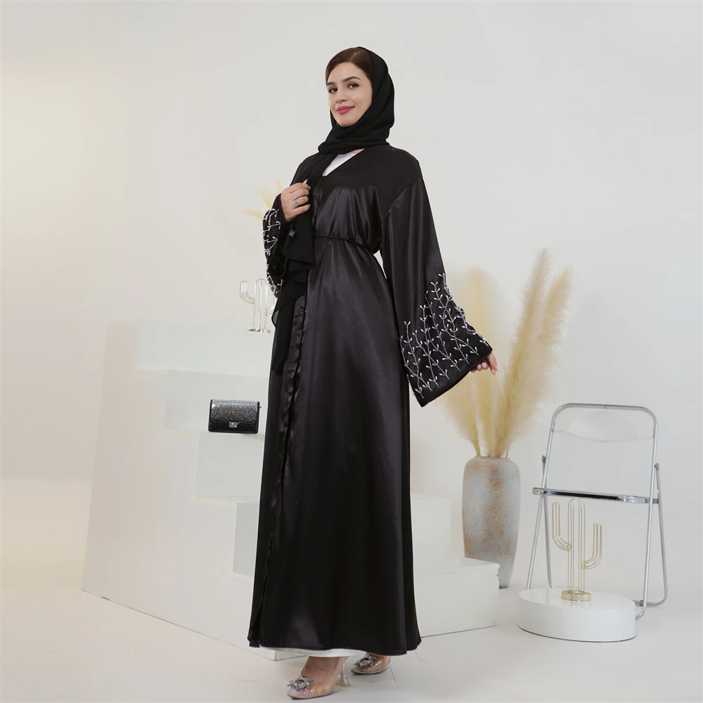 Muslim Beaded Dress Dubai Turkey Kaftan Eid Ramadan Islamic Jalabiya Kimono Cardigan Arabic Open Abayas Femme Musulman Vestidos