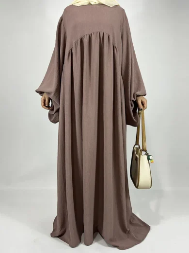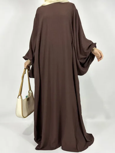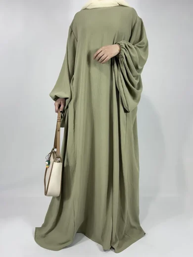 Be the first to review “New Balloon Sleeve Abaya Jazz Crepe Wide Bottom Loose EID Ramadan Dubai Muslim Woman Wholesale Islamic Clothing Modest Dress”
