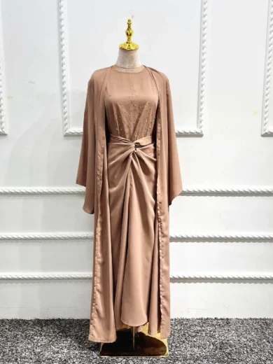 Be the first to review “Turkish Solid Color Fashion Beaded Three Piece Set Muslim Women Outfit Abaya Jilbab Hijab Modest Clothing”