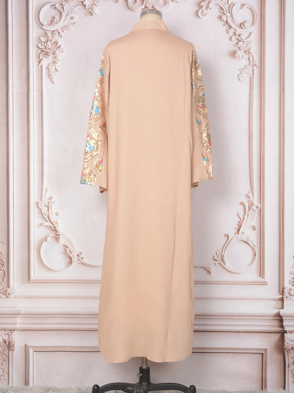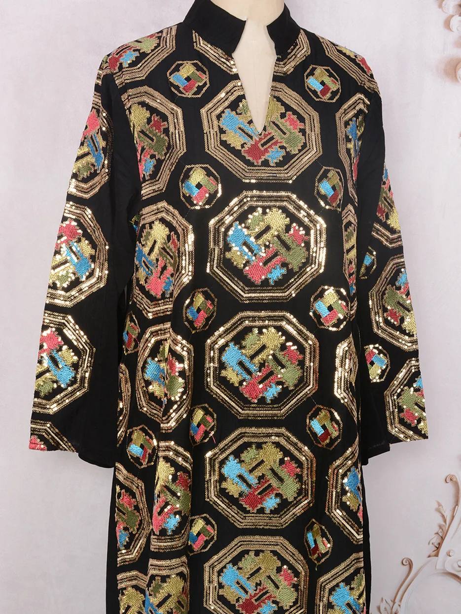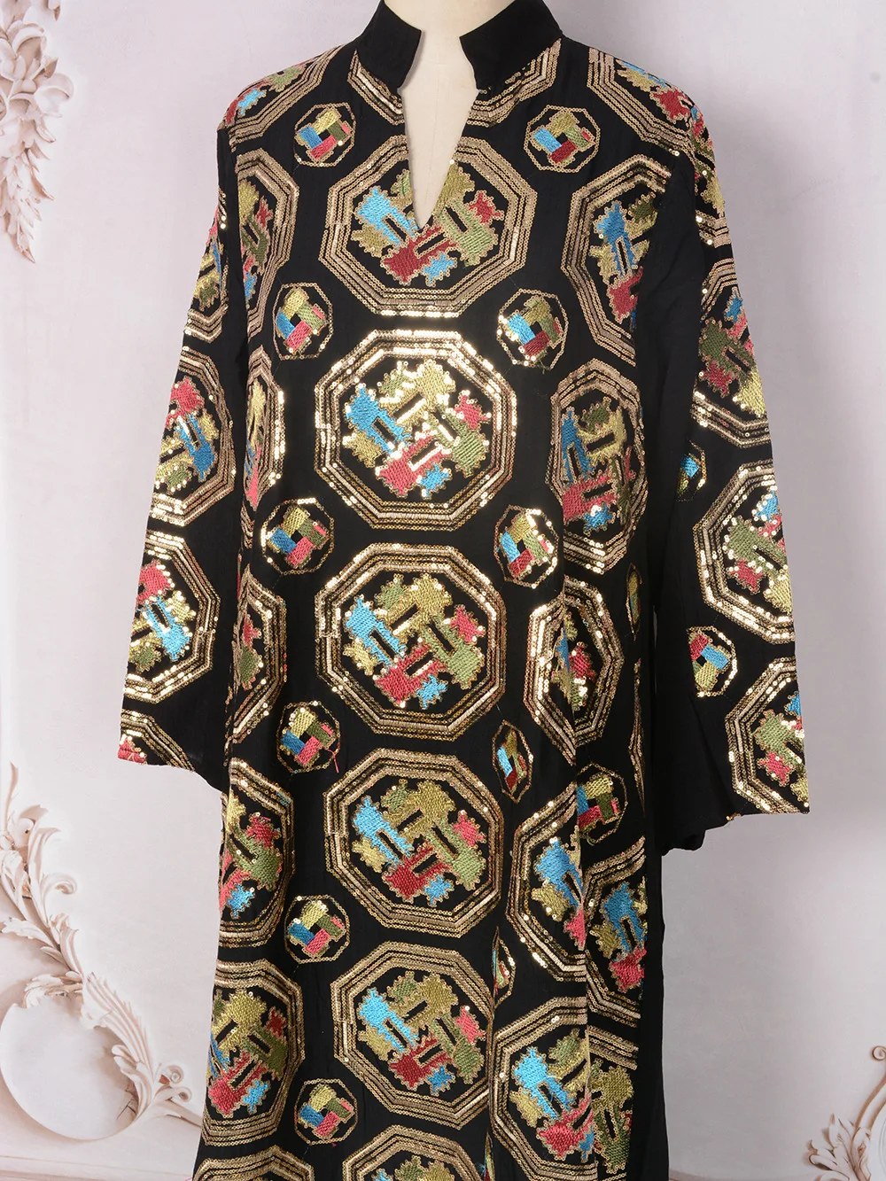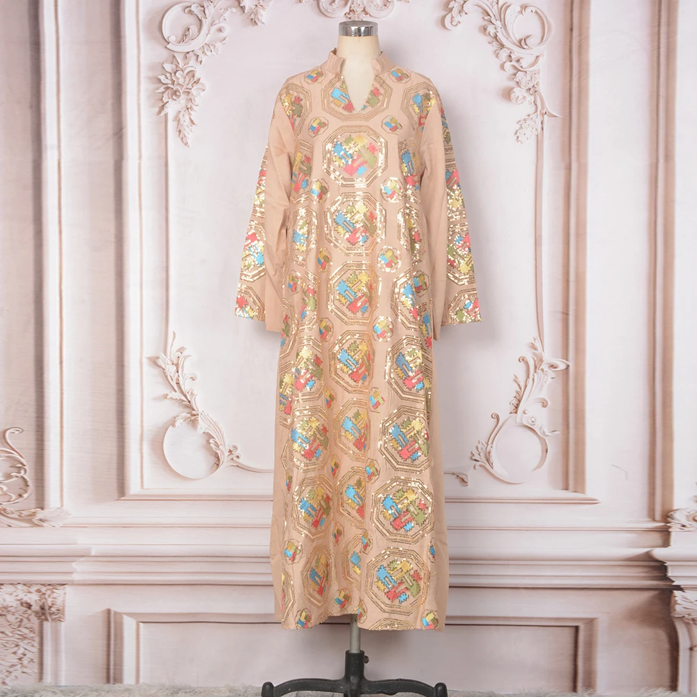 MT391 Uni Embroideried Sequin Luxurious Dresses With Long Sleeves Muslim Dubai Fashion Elegant Loose Abayas Women's Evening Dress