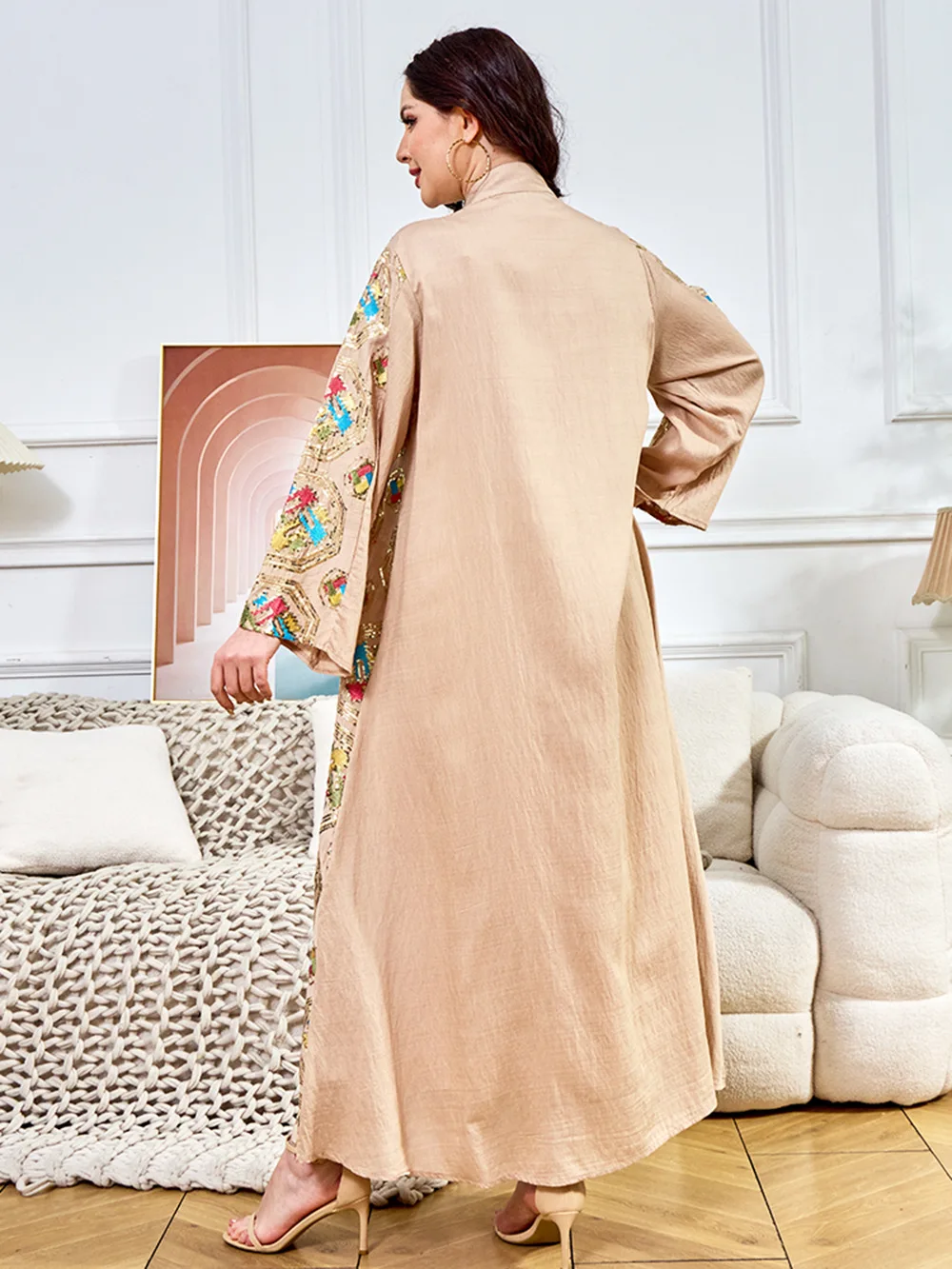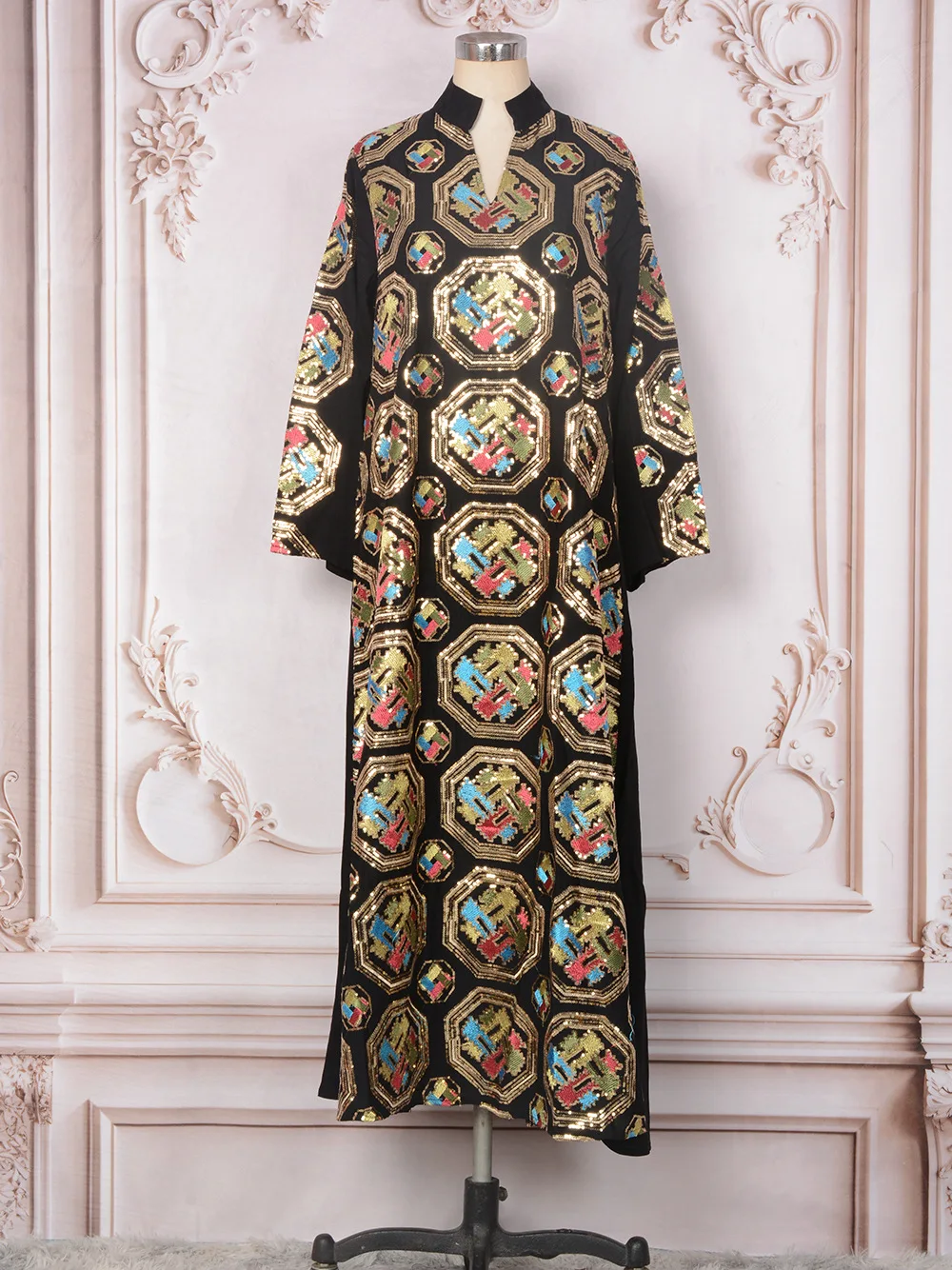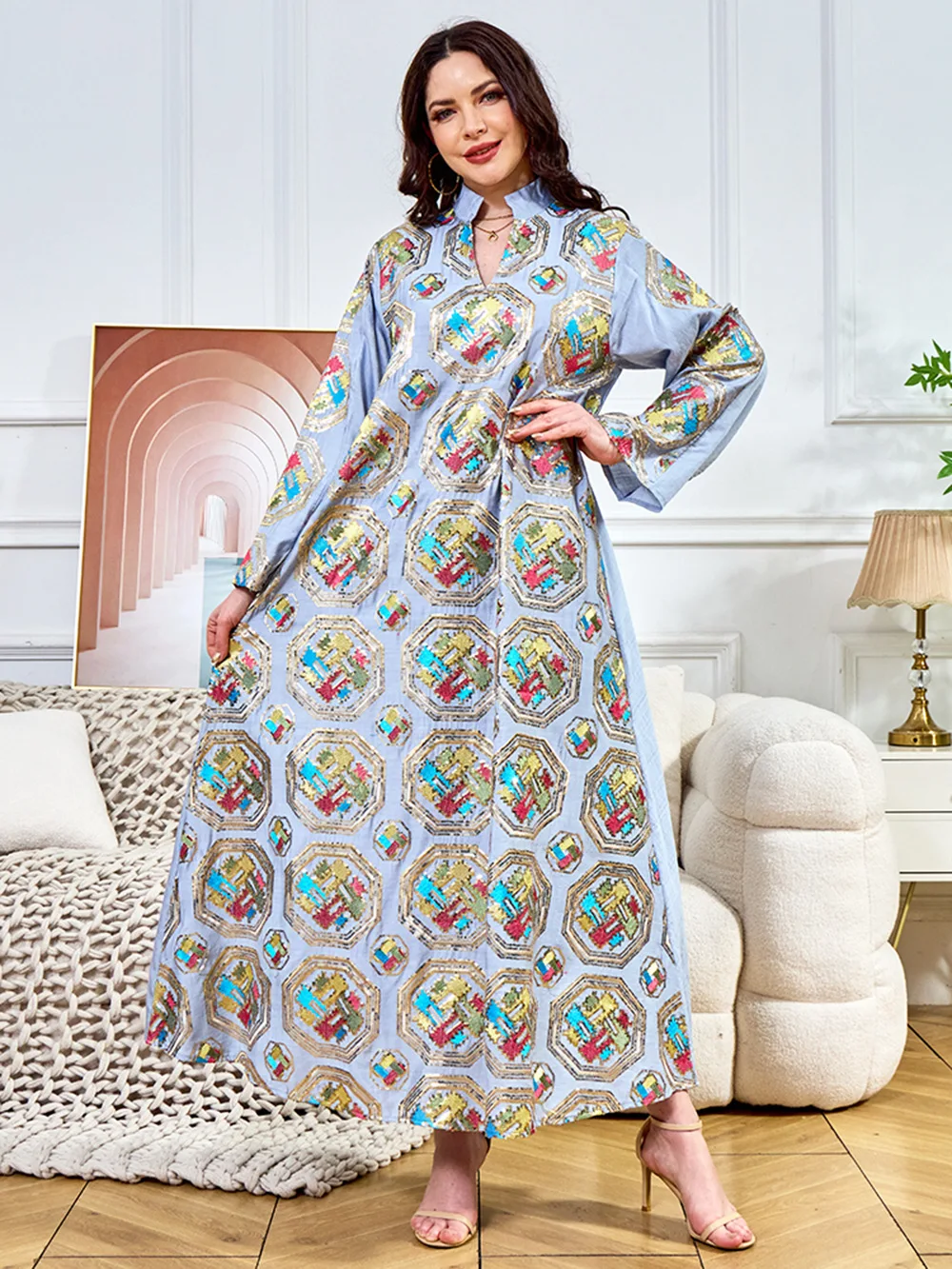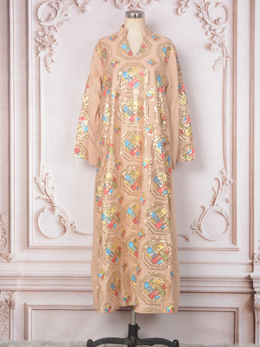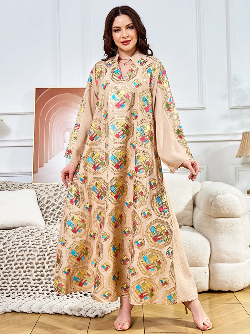 MT391 Uni Embroideried Sequin Luxurious Dresses With Long Sleeves Muslim Dubai Fashion Elegant Loose Abayas Women's Evening Dress