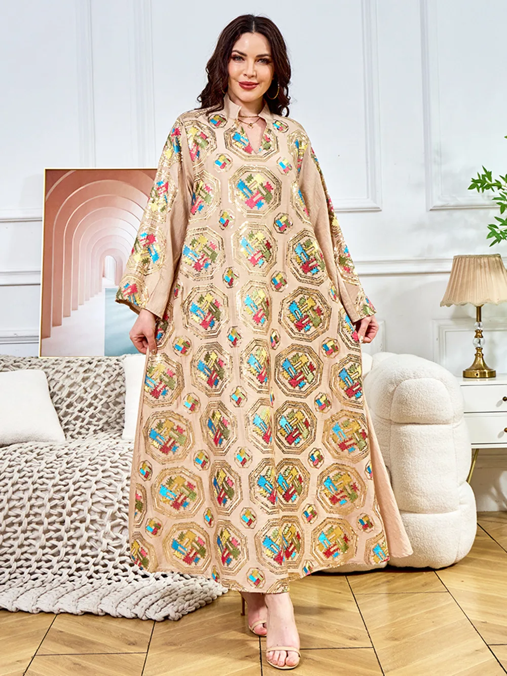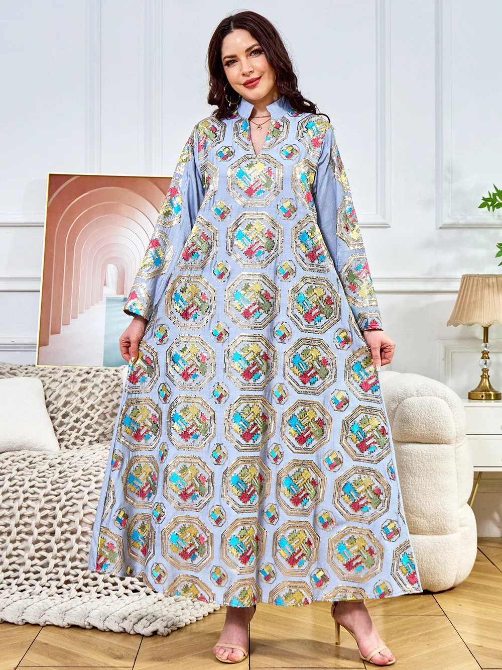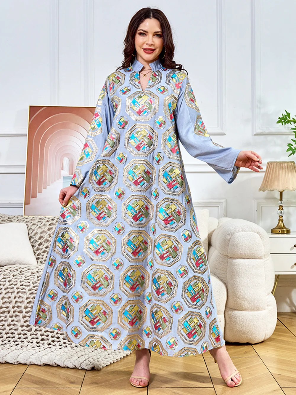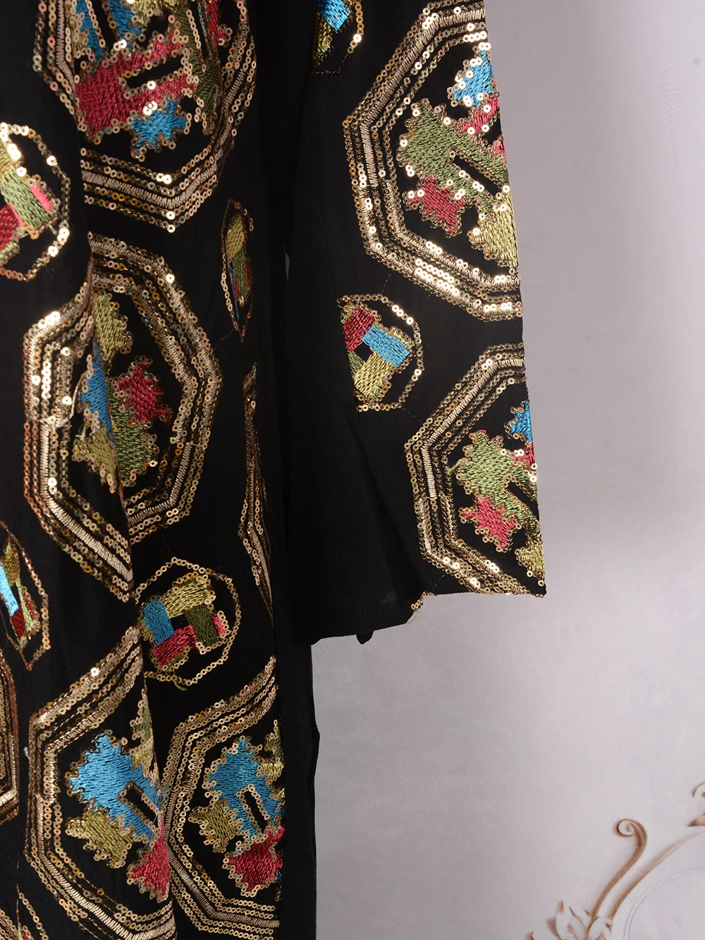 MT391 Uni Embroideried Sequin Luxurious Dresses With Long Sleeves Muslim Dubai Fashion Elegant Loose Abayas Women's Evening Dress