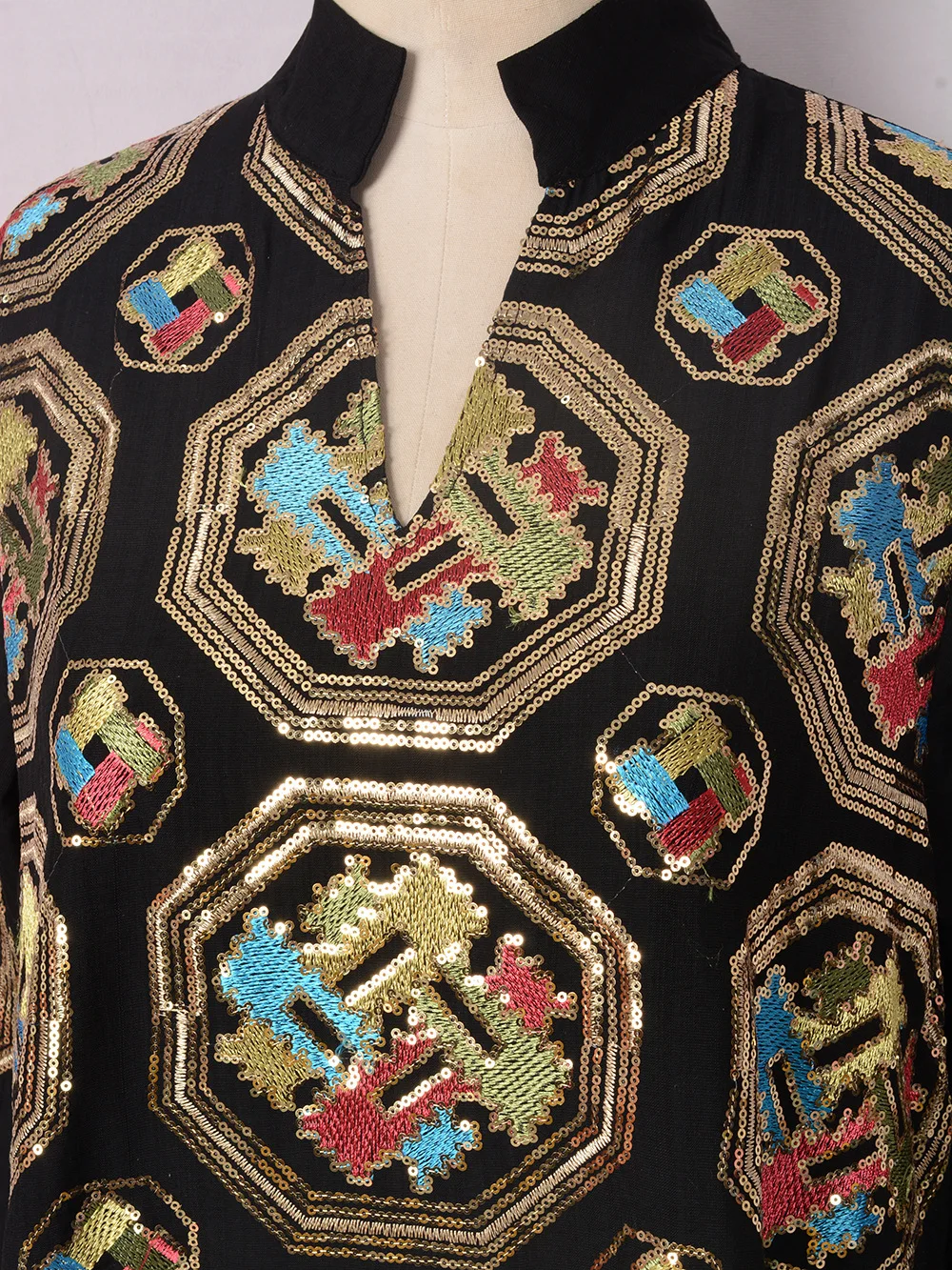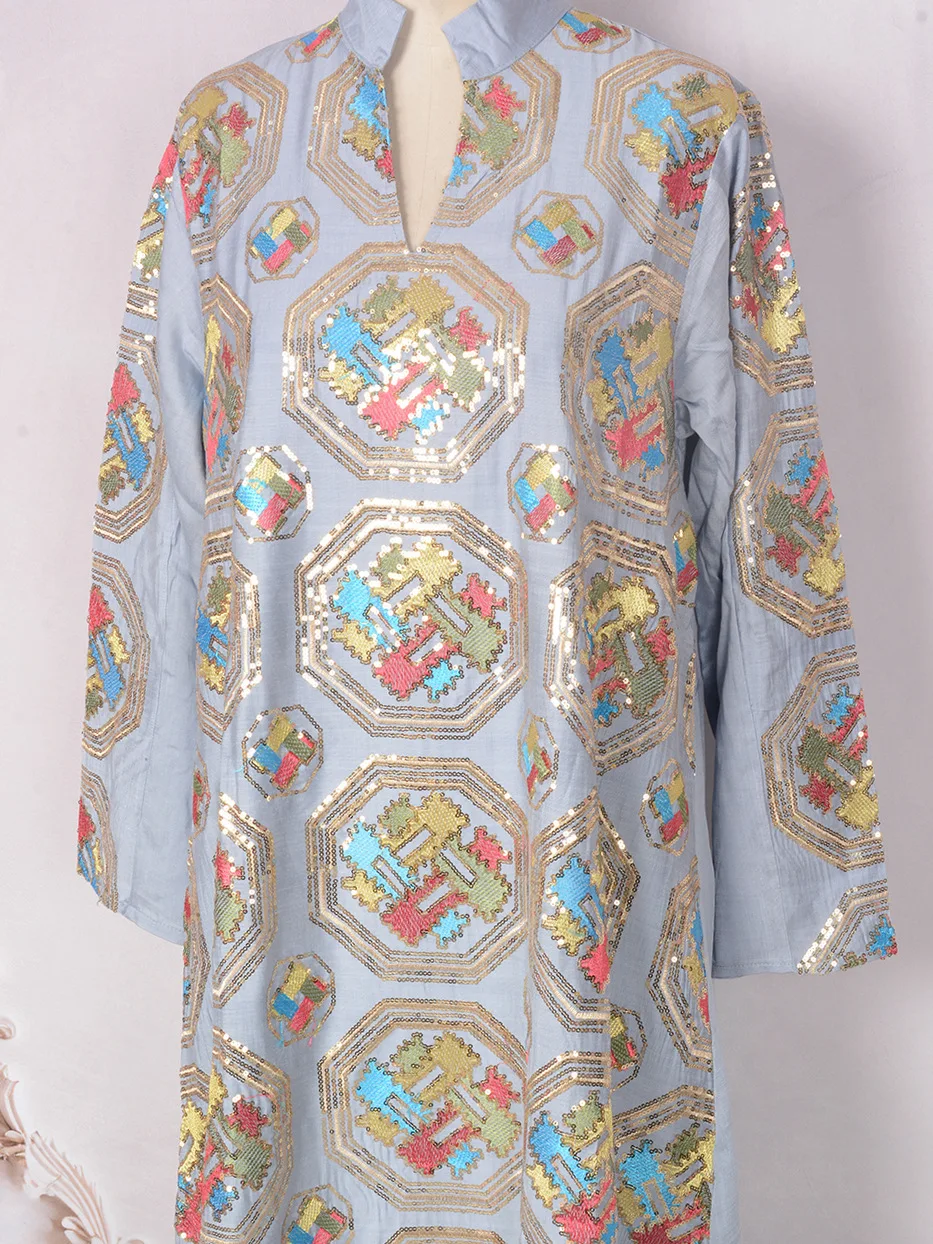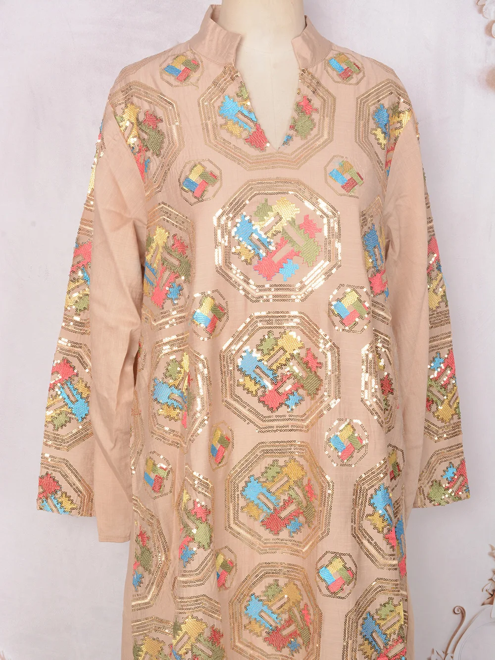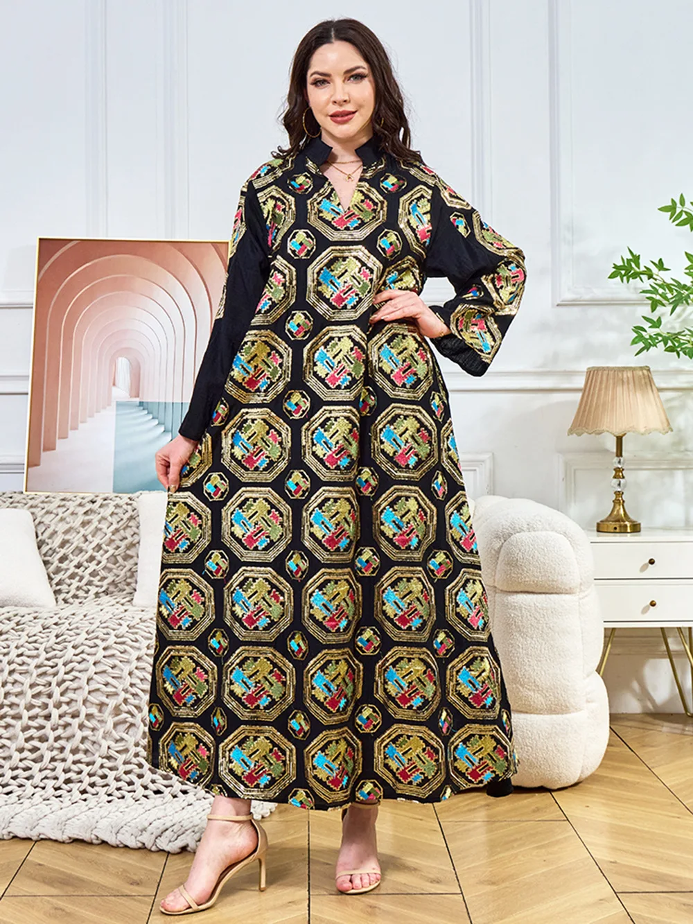 MT391 Uni Embroideried Sequin Luxurious Dresses With Long Sleeves Muslim Dubai Fashion Elegant Loose Abayas Women's Evening Dress