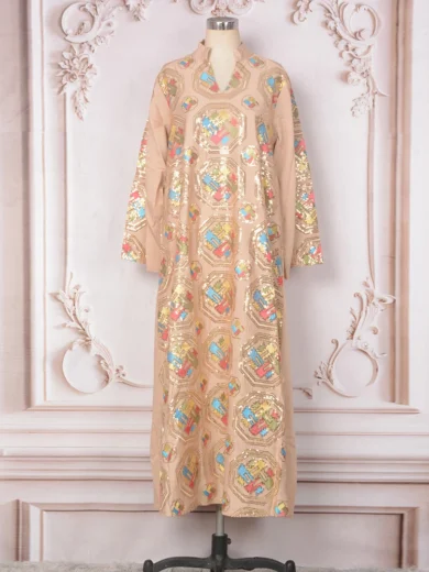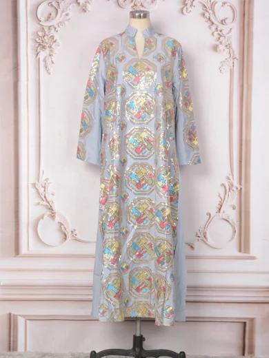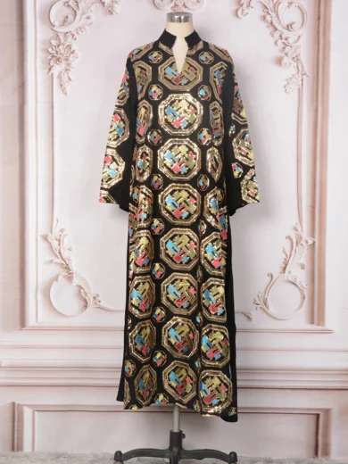 MT391 Uni Embroideried Sequin Luxurious Dresses With Long Sleeves Muslim Dubai Fashion Elegant Loose Abayas Women's Evening Dress